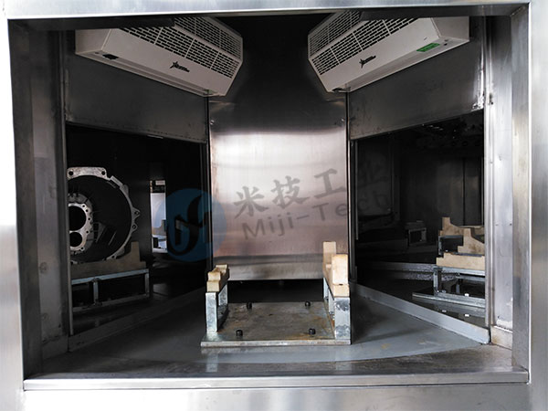 ● 针对转向节、箱体式零件高清洁度的多腔室回转清洗机